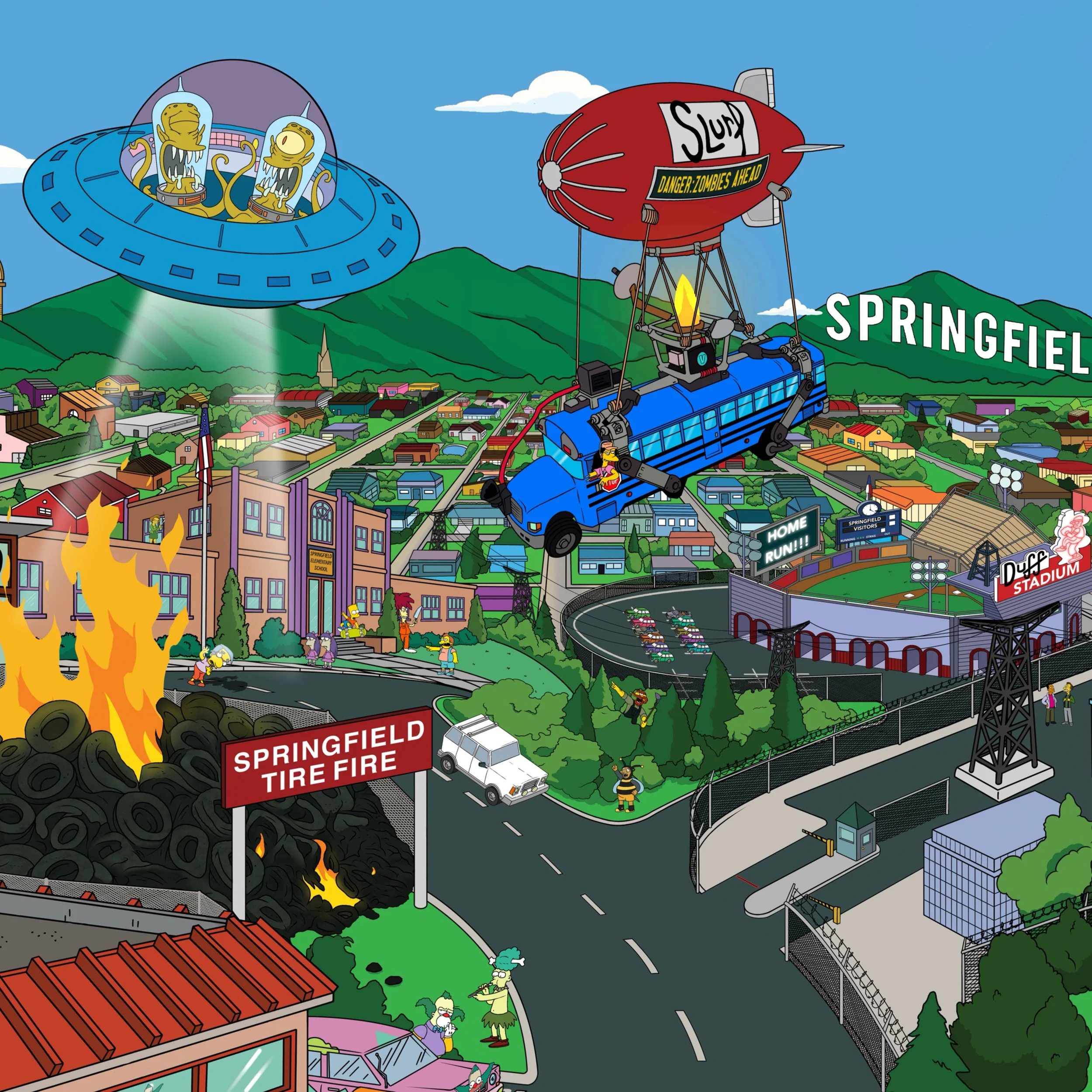 The Simpsons has long been one of my all-time favorite animated American TV shows. If you browse through the digital prints in my shop, you’ll notice a few Simpsons inspired pieces I’ve created. I’m also a longtime fan of Fortnite, the well known battle royale shooter that I’ve been playing with friends on Discord for years.